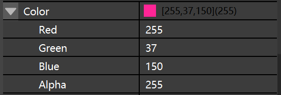 ModelNode.Color=ColorQuad.new(255,37,150,255)--修改Model节点的颜色哈哈,那么恭喜你找到了节点属性列表的终极奥秘,那就是所见即所得。
